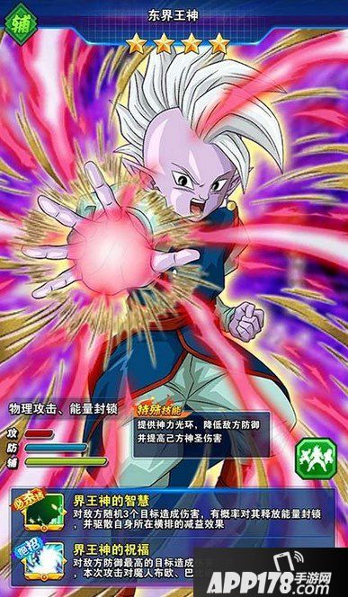 在十八号游戏更新以后,相信细心的玩家已经发现,在未拥有的英雄里,除了本月的限时神卡悟天克斯外,还多出了一个东界王神。这就意味着,这位早在游戏内测就已经存在,却一直千呼万唤不出来的东界王神,终于要登陆游戏,与众多玩家见面了。那么,东界王神,这位作为五位界王神之一,与破坏神平级,仅次于全王的存在,在游戏中又将会有怎样的表现呢?他的出现,会不会打破现有的格局,带来新的阵容变化?让我们一起来看一看。
