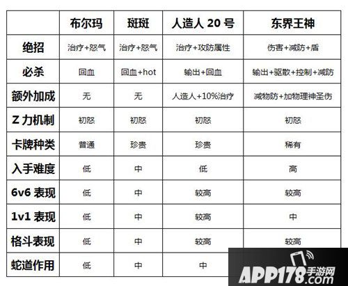 通过列表中的简单角色对比,可以对每个辅助有一个粗略的印象: