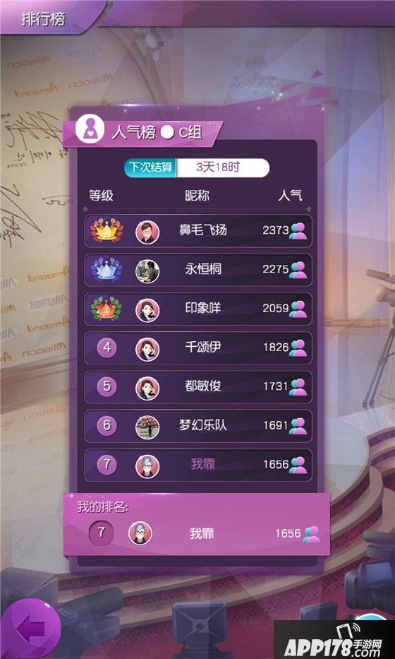 2. 时尚榜左侧显示人物的头像,右侧显示时尚榜的排名情况及玩家所在位次。