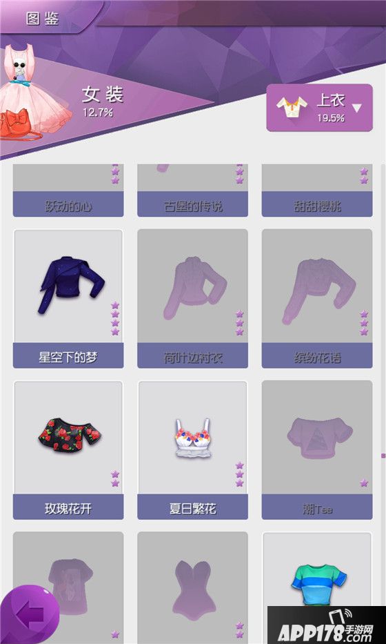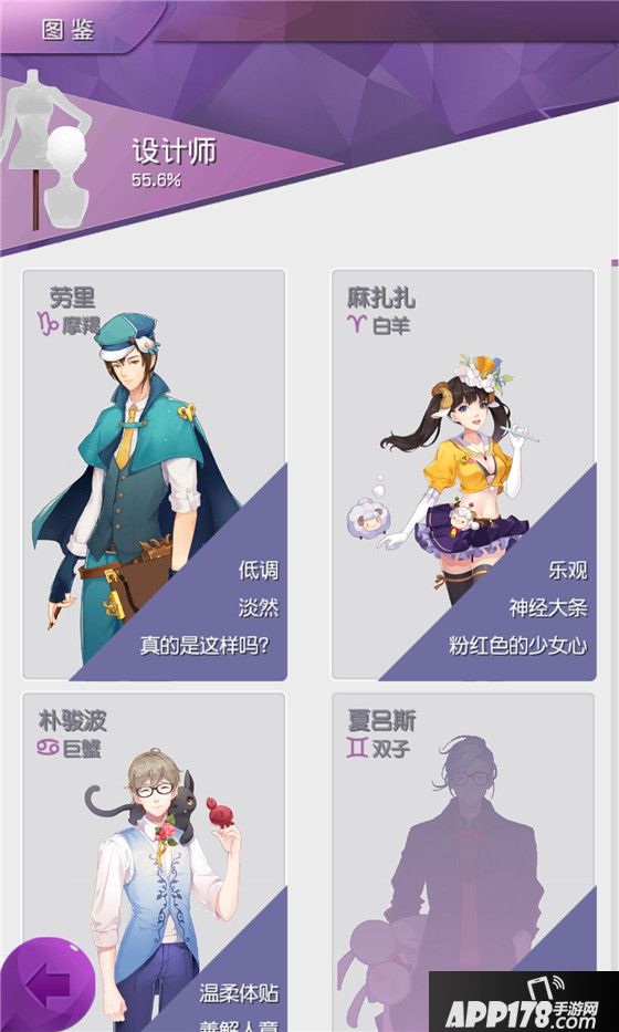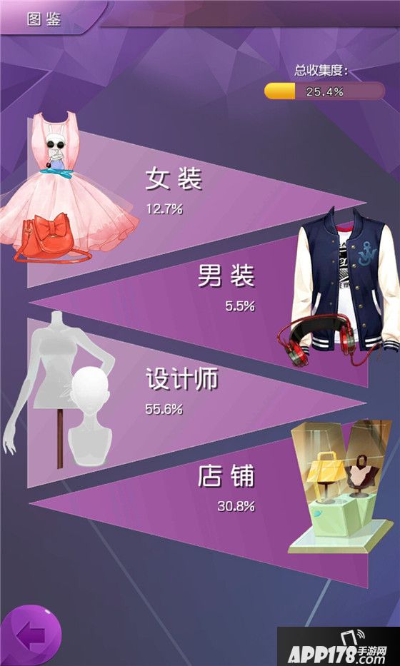 图鉴中的记录内容为店铺、服饰(包括男装与女装)、人物等,进入图鉴可以查询相应的类目,已经对该类目的完成度。其中,玩家获得的条目为掉落状态,可查看该条目的详细信息;未获得的条目为灰化状态,信息不可查看。