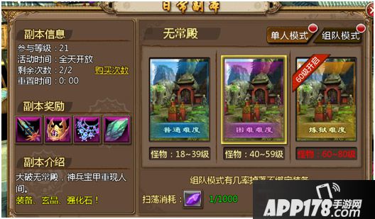 只能扫荡指定的副本,指定的模式。当前版本只能扫荡千佛石窟单人模式,无常殿单人模式,藏金岭单人模式,天魔堂单人模式。可扫荡的副本模式下具备一个扫荡按钮,不可扫荡的不具备这个按钮和文字信息。
