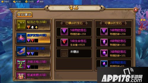 宝石又分攻击宝石和防御宝石之分,攻击宝石有:物攻、法功、命中、暴击四种,防御宝石有:生命、物防、法防、闪避和爆抗五种属性。