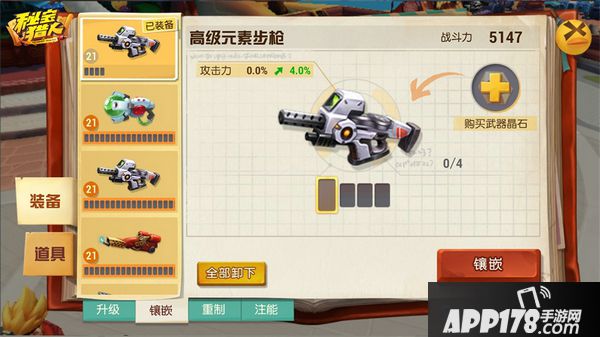 至于镶嵌,每镶嵌一颗晶石,武器将提升4%基础攻击力,装备将提升3%基础属性。品质越好的武器和道具,能镶嵌的最大晶石数目将越多,并且当武器镶嵌达到10颗晶石时,还将开启特殊的发光效果,让你战斗中赚足眼球!而且晶石还能免费卸下噢!