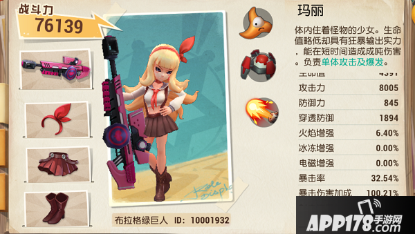 培养路线:爆发物理输出。拥有最强的物理攻击能力,往往是团队主输出,根据不同的武器和道具选择侧重于单体或范围攻击。