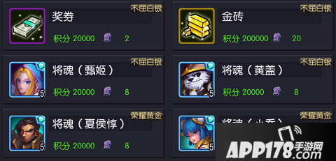 在比武场商店里面,奖励有经验药(打卤面等)、扫荡卷、金币兑换道具(金砖等)、将魂、装备等。建议新人最好以换将魂为主。兑换的优先级为: