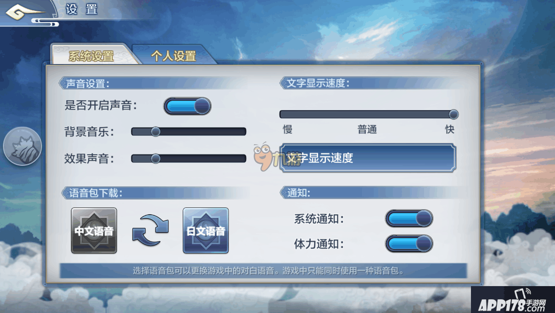 进入游戏后,会提示你选择语音包。这时候不需要纠结“我要下载中文语音还是日文语音呢”,因为进入游戏后在设置中可以进行中日语音的切换哦。
