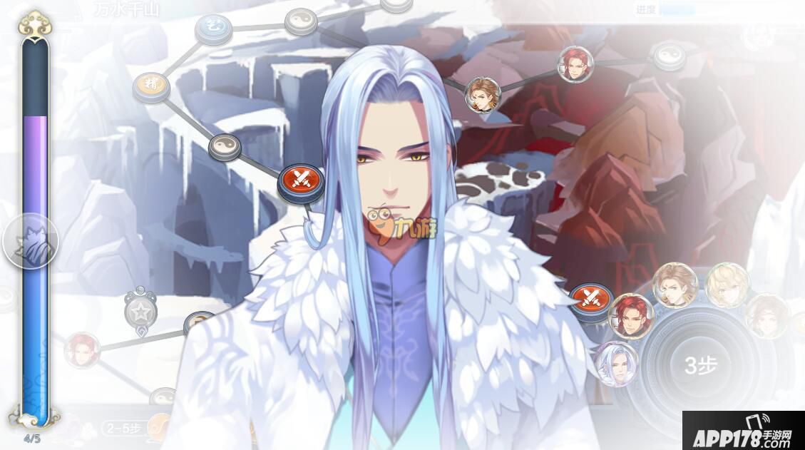 《梦间集》除了推图外,还有几种特色玩法。在我们“精尽人亡”的时候可以去“万水千山(类似《大富翁》玩法)”摸摸美男腹肌,刷刷角色好感;