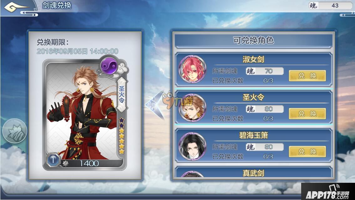 另外,进入关卡前获得的剑魂也可以用来兑换人物卡,而且可以选择你要兑换的人物哟。在主界面右上角点击“兑”就可以进入兑换界面了。