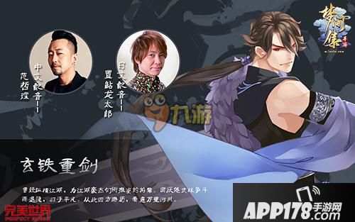 《梦间集》手游中,玄铁重剑的日文配音邀请了日本人气声优置鮎龙太郎,置鮎龙太郎为多部知名动漫中的角色配音,《灌篮高手》的三井寿,《死神》的朽木白哉等,都深受广大漫迷们的喜爱。置鮎龙太郎嗓音条件很好,声线平稳低沉,有种高傲的立体感,此次为玄铁重剑献声,相信定会给各位寻梦人带来不一样的惊喜。