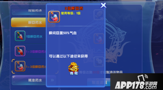 瞬回药让你可以挑战更大难度的BOSS或者对手、
