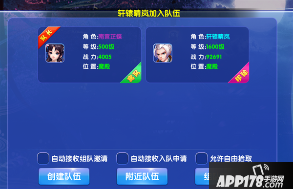 玩家在游戏过程很多时候需要组队才能完成任务和击杀怪物,在组队界面,玩家可以创建队伍,设置自动接收入队请求和掉落分配。老司机你敢带上猪队友吗?