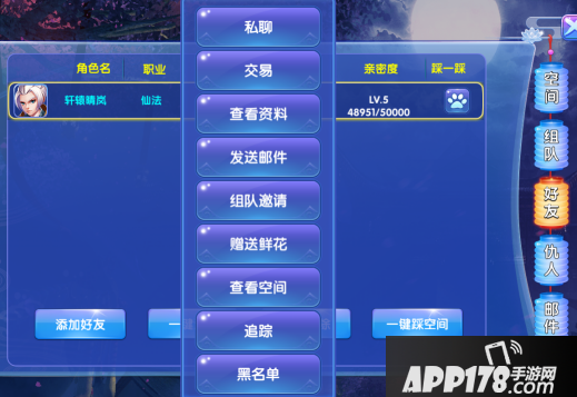 玩家可通过好友界面添加好友和删除好友,点击好友可以管理好友,可以和好友私聊交易,发送组队邀请、赠送鲜花等。增加几个好友一起玩,让你不再感到寂寞,一起去打副本,抓鬼,完成更高难度的挑战吧,没有你,可是半步难行啊好友们。
