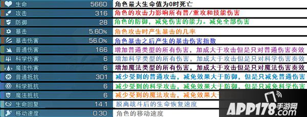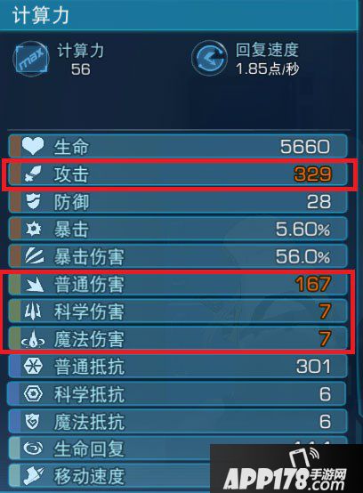 力量:影响角色的攻击和属性伤害(普通/魔法/科学)