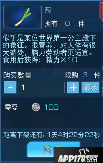 葱可以在某高中宿舍楼下主食料理店老板处购买,售价为100硬币,每人每天限购3份。
