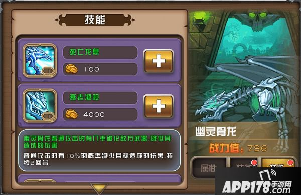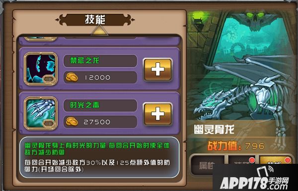 幽灵骨龙最为可怕的是,每个回合的开场技能里,会直接降低对方全体的防御。同时又增加自己的永久法攻,这无疑是增加了幽灵骨龙的输出,也同时提高了本方所有佣兵的伤害。