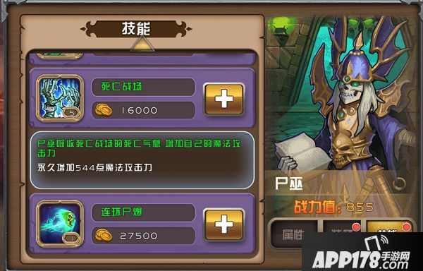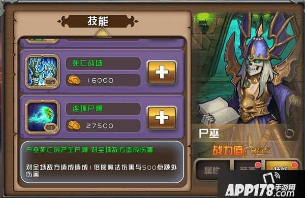 死亡战场永久增加法术攻击,连环尸爆根据法攻进行全屏自爆,这是尸巫最可怕的一个点,死亡时又会给予敌人一个重击。