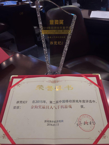 年关将近,又到了游戏界一年一度嘉奖优秀游戏厂商、单款游戏和游戏人的重要时刻。2015年年底,业内两个重磅级奖项——金狗奖和金钥奖——相继公布了获奖名单,并于2016年1月13日,分别隆重举办了盛大的颁奖典礼,多款国内顶尖手游喜获殊荣,其中骅威第一波根据超级热门IP《莽荒纪》与4399联合研发的手游《莽荒纪2》同时获得了两项大奖——“金狗奖之年度最具人气手机游戏奖”和“金钥奖之年度最佳小说IP移动游戏奖”。