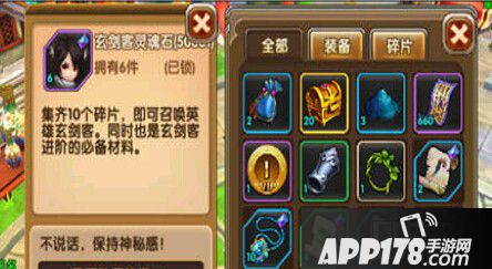 点击物品上方,就能从弹出的提示框中查看到物品的相关信息。可以对物品进行使用和出售操作,并可了解装备道具和英雄碎片的产出途径。
