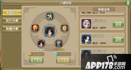 “六道轮回”分为英雄轮回、碎片分解和秘籍分解。需要在安澶城中找到NPC延王,不过在英雄阁、神功阁也有快捷入口的哟。