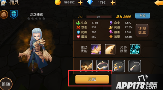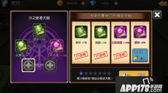 学习佣兵天赋,可以增加佣兵各种对应的属性值,佣兵学习的天赋品质排行从低到高分别是:绿,蓝,紫,金,橙金。