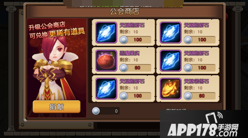 个人贡献可以去公会商店购买稀有道具,公会商店可以升级,等级越高可以兑换购买的道具就越稀有。