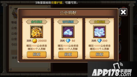 用金币和钻石向公会捐献会获得个人贡献,每日都可以捐献一次哦