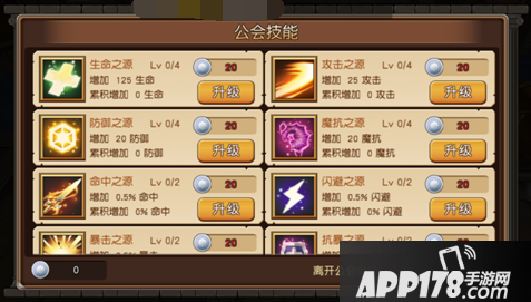 个人贡献还可以升级公会技能,技能是加在我们主角英雄上的,公会等级越高,公会技能能级就越高,离开公会公会技能会继续保留。