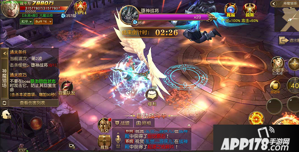 神魔猎场是《天堂战记》三大组队副本玩法之一。您将和其他玩家一起组队,共同在限定时间内击杀五个首领,完成副本并获取装备及道具奖励。