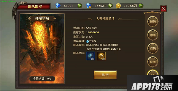 2、神魔猎场的等级越高,难度越大。推荐您达到推荐战力后,再和其他玩家一起组队挑战副本。