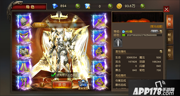 >装备自带的“传奇属性”加成也非常高,为勇士战力带来非同一般的提升;