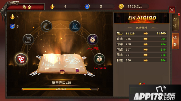 1.炼金熔炼时记得保留4阶3星以上的橙色装备,可以用来合成5阶2星的红色装备哦!
