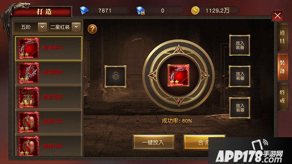 可以通过打造装备来合成高阶的红装,合成有一定概率会失败;