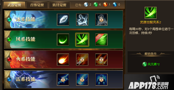 元素的附魔值达到指定条件后,将觉醒全新装备技能及武器外观。