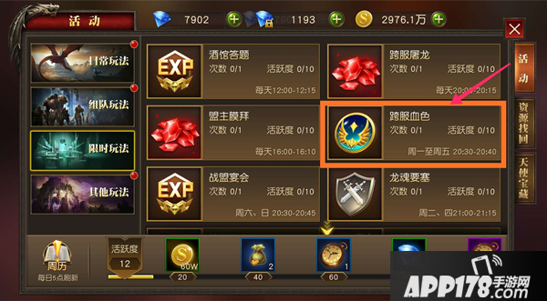 准入规则:服务器开启世界服后,开放跨服血色争霸