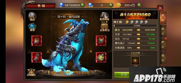 2. 和角色身上穿戴的装备类似,坐骑装备属性也具有基础属性。基础属性只有两种:生命和攻击。坐骑装备的基础属性数值非常高,能为玩家提供大量战力。