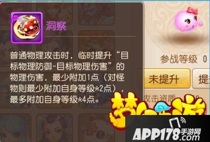 附加自己物理伤害减去对方物理伤害的攻击力,我们拿攻宠中的泡泡来进行对比,下面是洞察技能效果