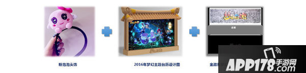(3)豪华线下礼包内含多种精美周边:粉泡泡头饰1个、2016年梦幻主题台历1个、金政基梦幻狂想曲画框1个,以及嘉年华定制手提袋1个。