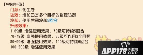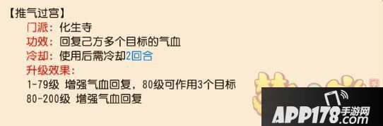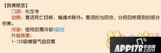 选择化生孩子的朋友们,一般第一回合使用金刚护体的较多,高速流化生即使不用我佛慈悲去复活拉人,也可以直接给某个怕被点杀的对象套上后减伤效果当回合生效,只是利用率较低,容易浪费回合,加速孩子的气血损失。推气过宫CD2回合,3回合才能恢复1次血量。我佛慈悲也是。治疗血量未知。同样需要和防御,卡药==配合起来合理使用。