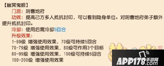 从上图表大家可以发现辅助孩子:化生、普陀、地府的3项技能冷却时间均为2、3、5回合。
