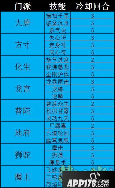 方寸和其他输出门派的孩子技能冷却时间均为3、3、5回合。