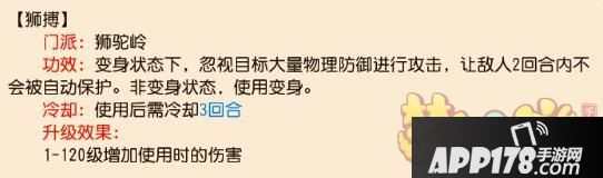 选择狮驼孩子的朋友们,单P中应用最多的还是基础刀法和狮搏,然后还有配合辅助的血耐攻魔息狮,如果魔息效果不被削弱,单P治疗流辅助配合凝气凝神,完全不用担心蓝的问题。别人也耗不过我们。群P配合多地府狮驼队伍,依然需要有爆发力的鹰击,只是CD时间3回合太长了,平时还是会用到其他技能,常规加点生存也是个问题。假设把一个狮驼的资质提升为血耐为主,加点都加到力上,和资质提升以力体耐为主,加点平摊到血耐攻上,其实属性也是差不多的。风火也想练一个特别的血耐魔息狮,平时可以改变加点做血耐攻魔息狮。基本可以达到满体耐资质,攻资也不低的状况。现在我就2个孩子,先拿第一个仙族的试水研究中!