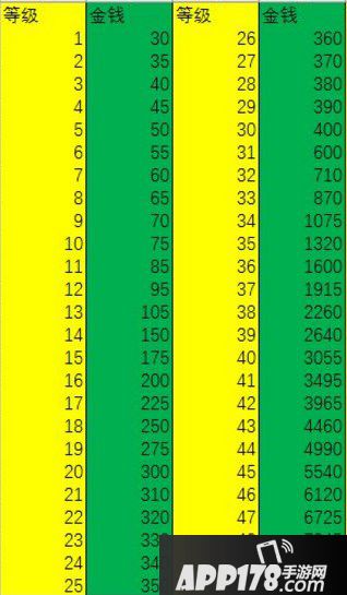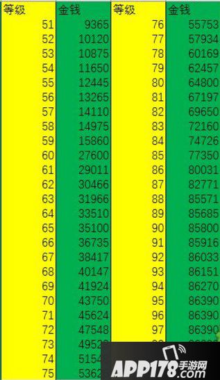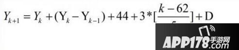 在这里,k是当前等级,[]为高斯函数即取整函数,当(k-62)/5的余数分别是1.2.3.4的时候,D分别等于1,0,2,1。最开始的时候Y61-Y60=1411.