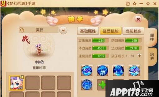 而幼年时期是最花钱的,大概每天要花200万银币左右,也就是一共需要4000w左右。而且每天活力花费也比较多,每天大概1000活力左右吧。最终资质如下: