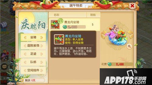 在体验齐心协力赛龙舟的同时,别忘了,全新赛龙舟坐骑也已经上线了端午特卖商城!