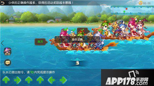 龙舟竞渡,是端午节的传统竞技活动。在活动期间,玩家可以找到桃源仙童匹配自己的队友和对手,然后根据系统提示,在规定时间内正确输入不同方向的按键,推动自己的龙舟驶向更远处。若是玩家担纲的是队长一职,更需要每隔一段时间就决定队伍下一步的策略,合理的策略将提升团队之后的前进效率,让团队距离胜利更进一步!
