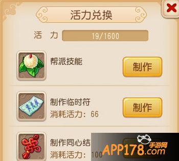 活力制作同心结:每次消耗100点活力,同心结赠送给好友,对方收取可获得丰厚银币。