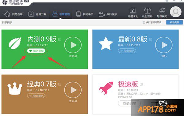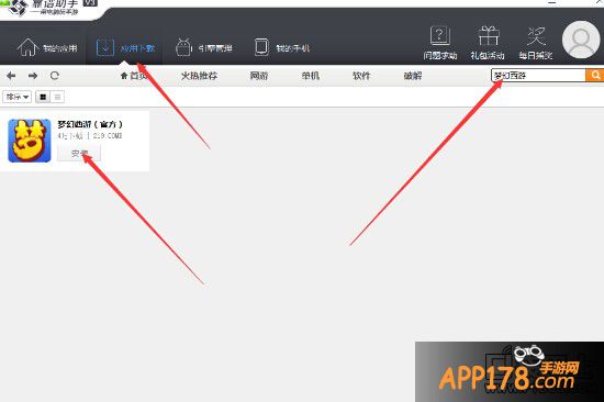 ①设置0.9引擎为默认引擎,在“应用下载”搜索安装“梦幻西游”
