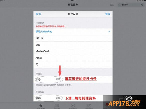 四、填写信用卡卡号,手机号(用于接收手机验证码)等信息,绑定信用卡