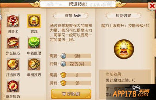 技能效果:提升技能等级*10的魔法值上限