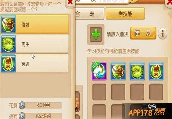 认证之后我们取消认证,这里选择偷袭这样我们就可以将两个必带技能全部顶掉。
